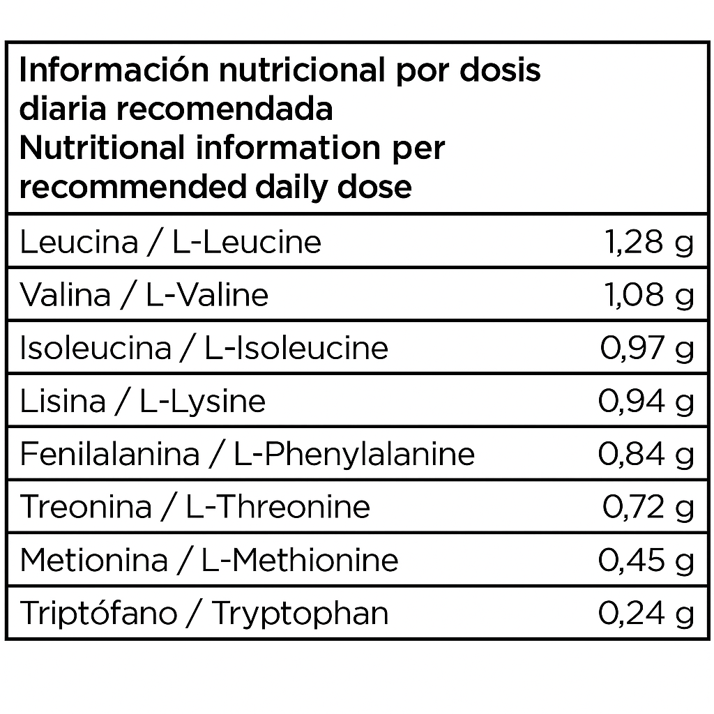 • Contiene los 8 aminoácidos esenciales (EAA).